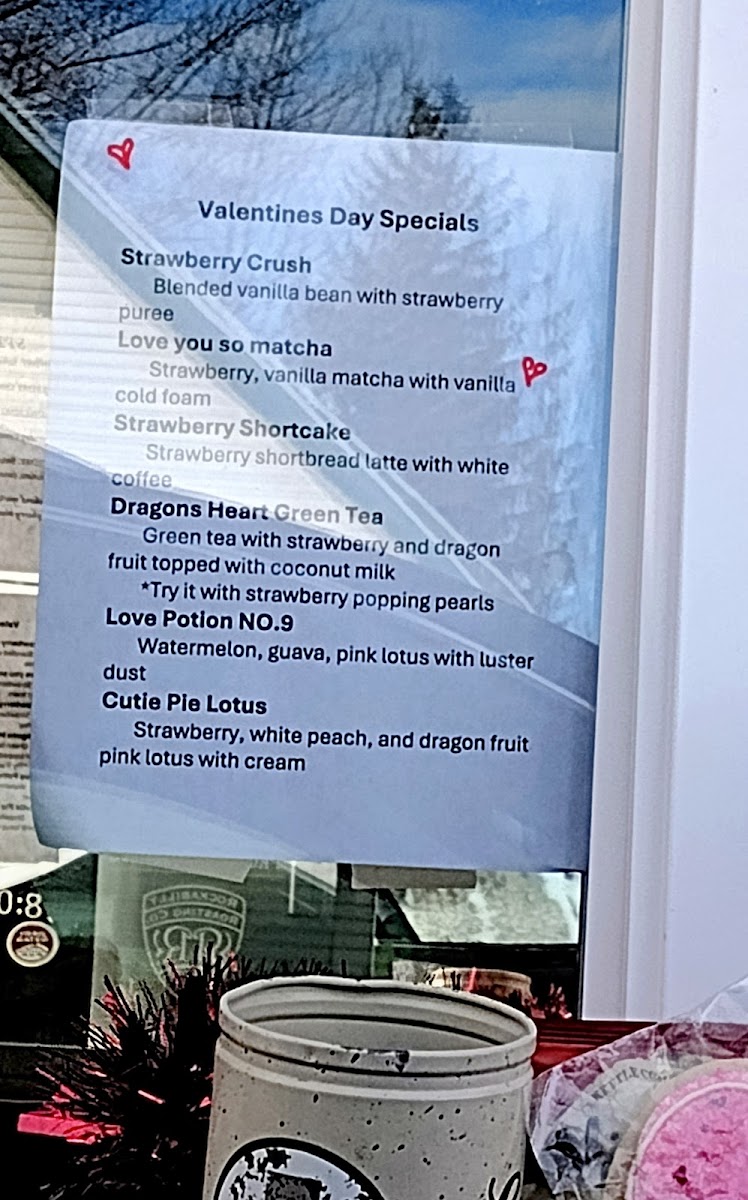 At Timber Ridge Espresso, located at 601 C St, Plummer, ID, their menu offers a delightful variety of beverages and snacks that cater to all tastes. For coffee lovers, they serve classic options like Latte, Mocha, Cappuccino, and the refreshing Cold Brew and Nitro Cold Brew, perfect for any time of the day. During special occasions like Valentine’s Day, they offer unique beverages such as the Strawberry Crush, Love You So Matcha, Strawberry Shortcake, and Love Potion No.9, each crafted to add a festive twist. If you prefer a fruity tea experience, try the Dragons Heart Green Tea.